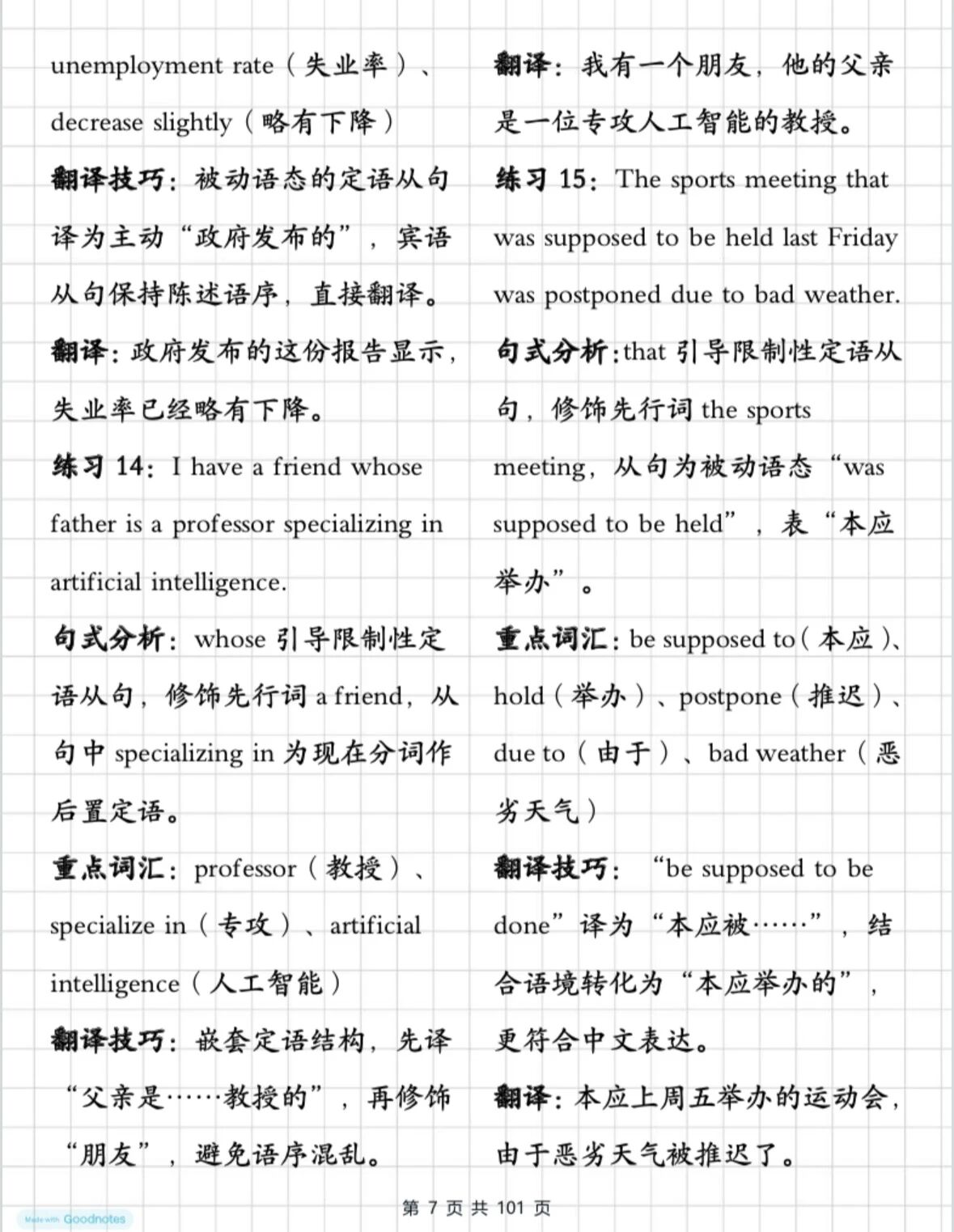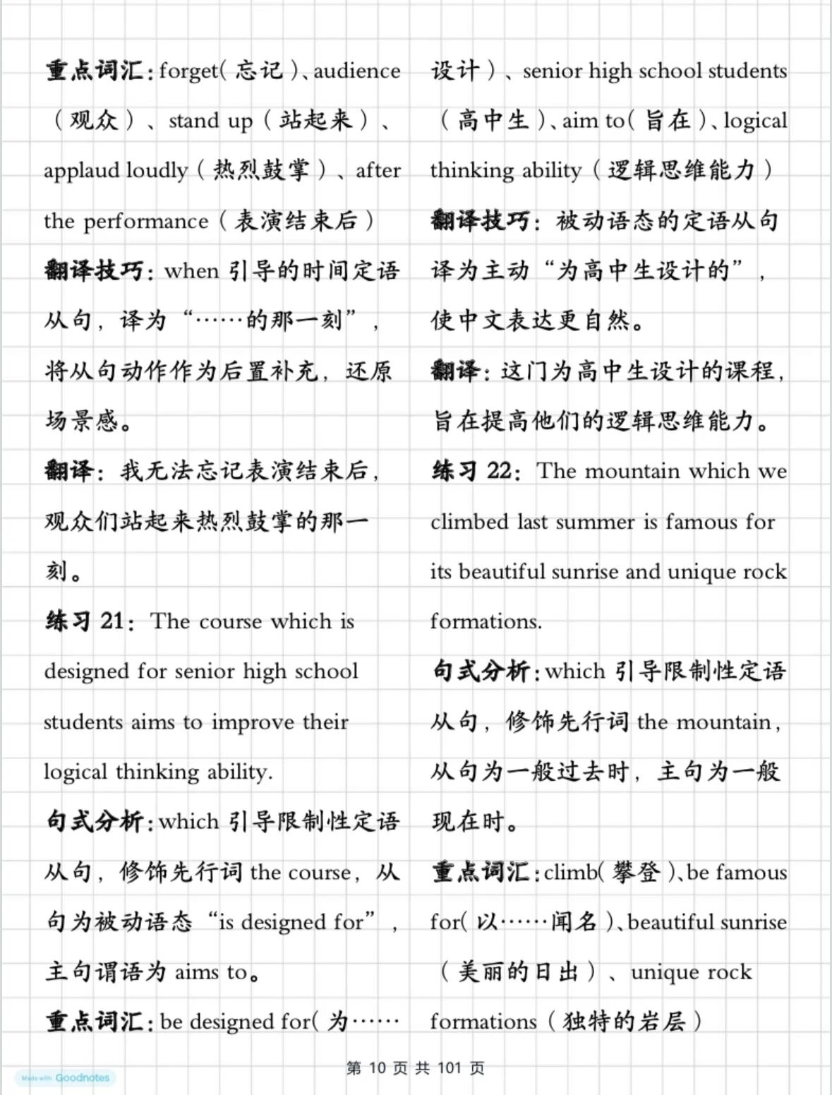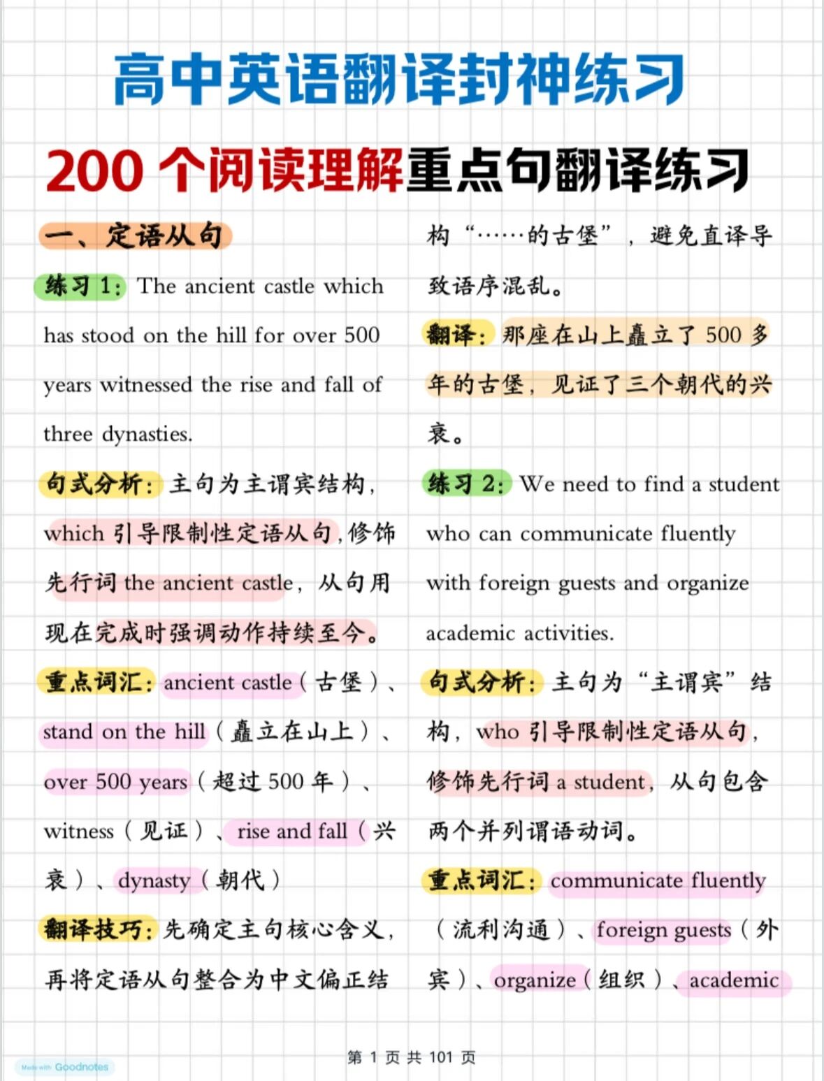 还在为英语阅读里的长难句头疼吗?还在对着定语从句、状语从句抓耳挠腮吗?这份高中英语翻译封神练习直接给你把阅读里的重点句拆解透了!从「句式分析」到「重点词汇」,再到「翻译技巧」,每一句都掰开揉碎了讲。别再让长难句拖你后腿!现在就码住这份宝藏练习,从今天开始,每天10句,轻松搞定英语阅读!